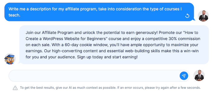 Setting it up is easy, with the tools you need. Just offer a fair commission, explain the program clearly, and manage your affiliates. It's a win-win for you and your students!