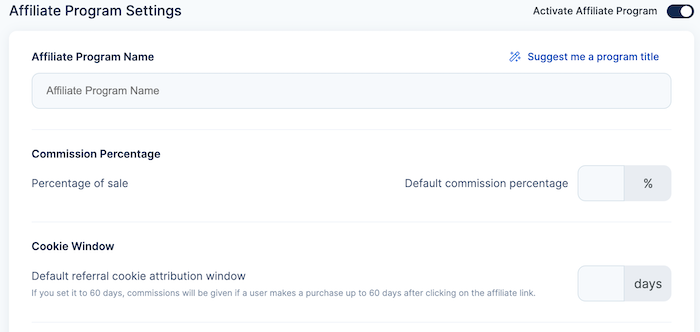 - Program Activation/Deactivation: Activate or deactivate your program with a simple toggle, allowing you to fine-tune your affiliate strategy.