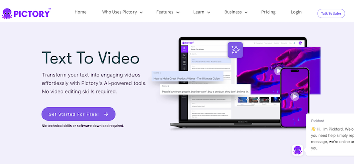 - Pictory: Turn long videos into short, engaging clips.