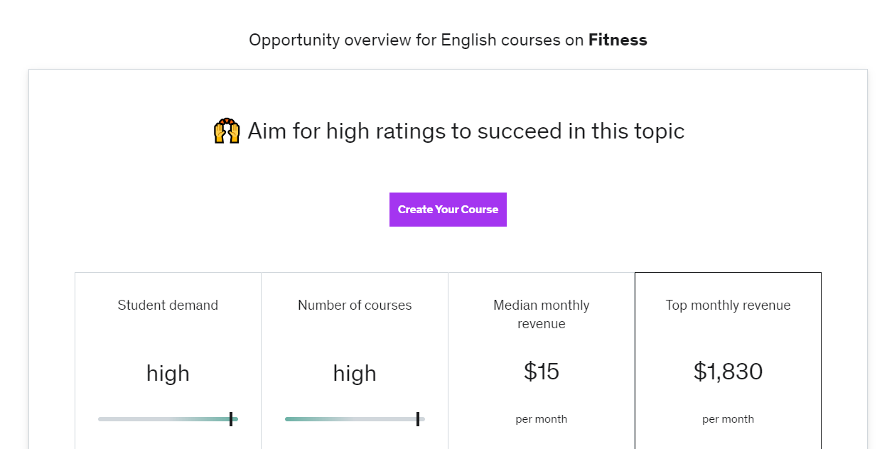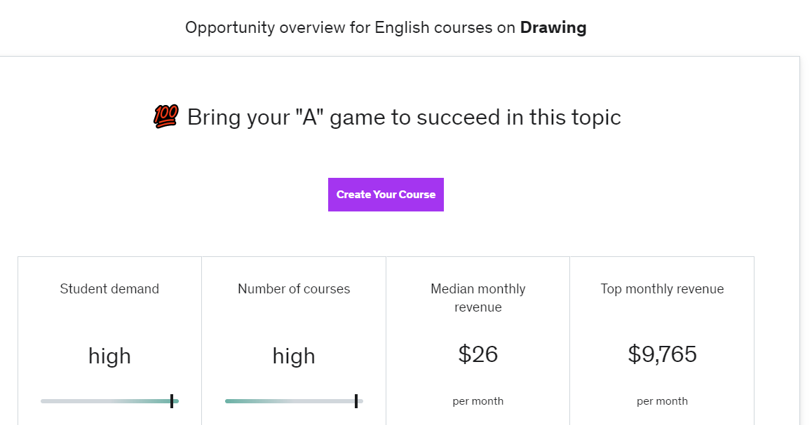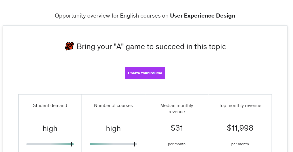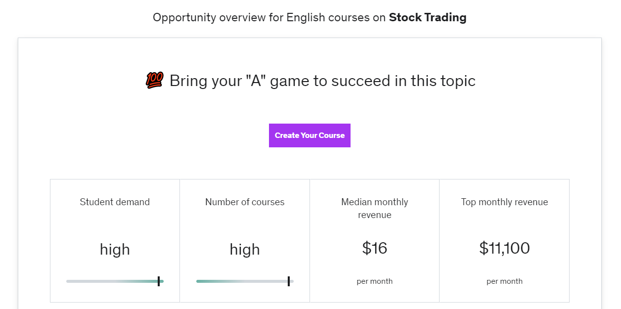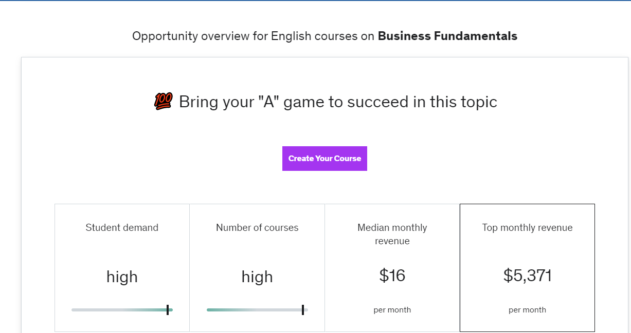 From the snapshot above, it's clear that if you create a valuable course on business fundamentals, there are high chances that your monthly revenue will be up to $5,000, which is a great deal!
