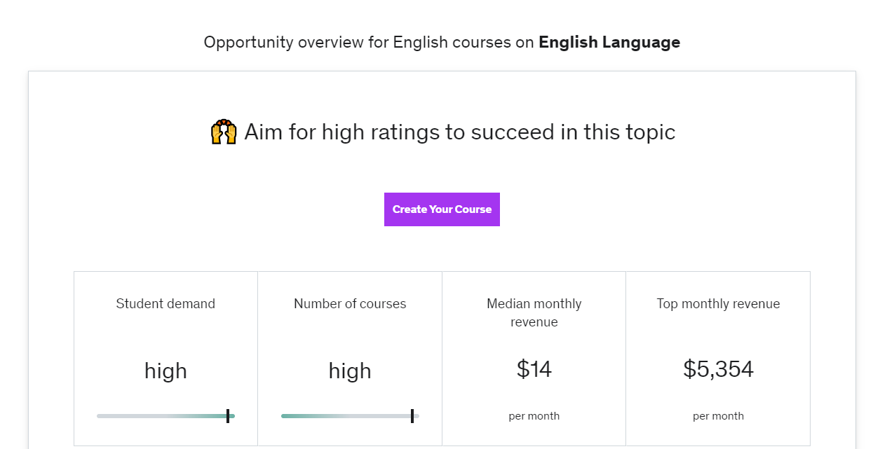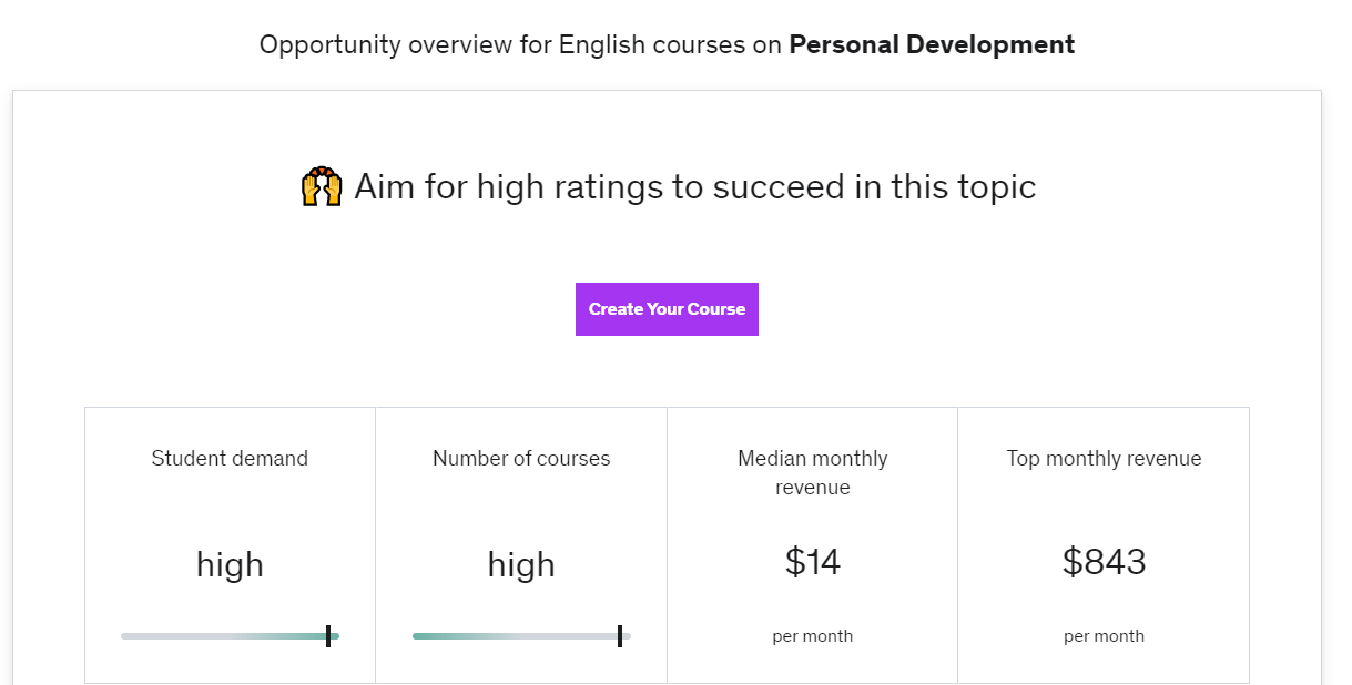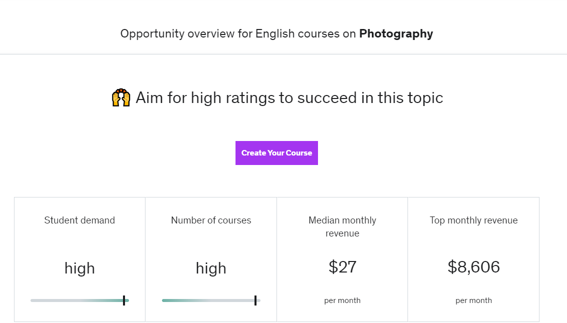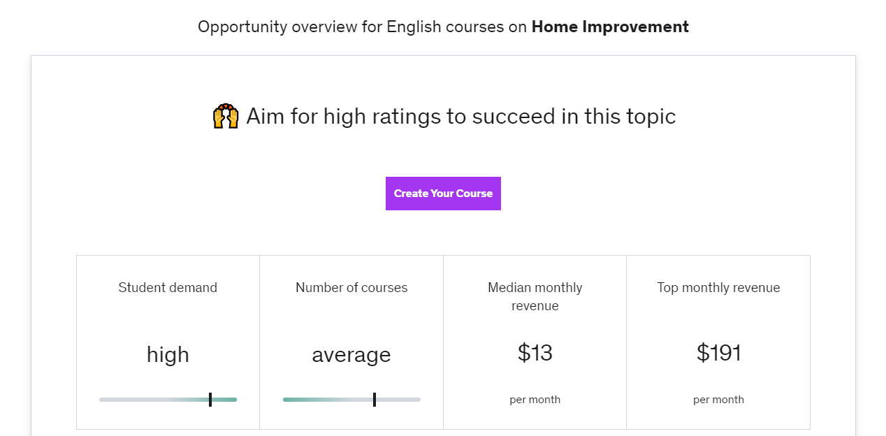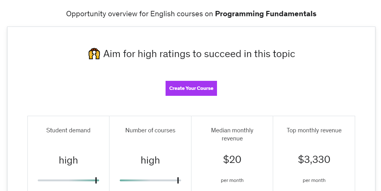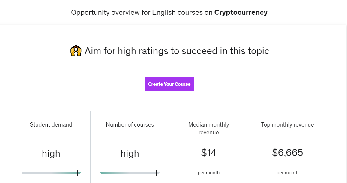 The student demand is high. So, if you manage to create a good course then you can earn more than $10,000! But there is a lot of competition there, as over 82% of enrollments go to the existing top courses: