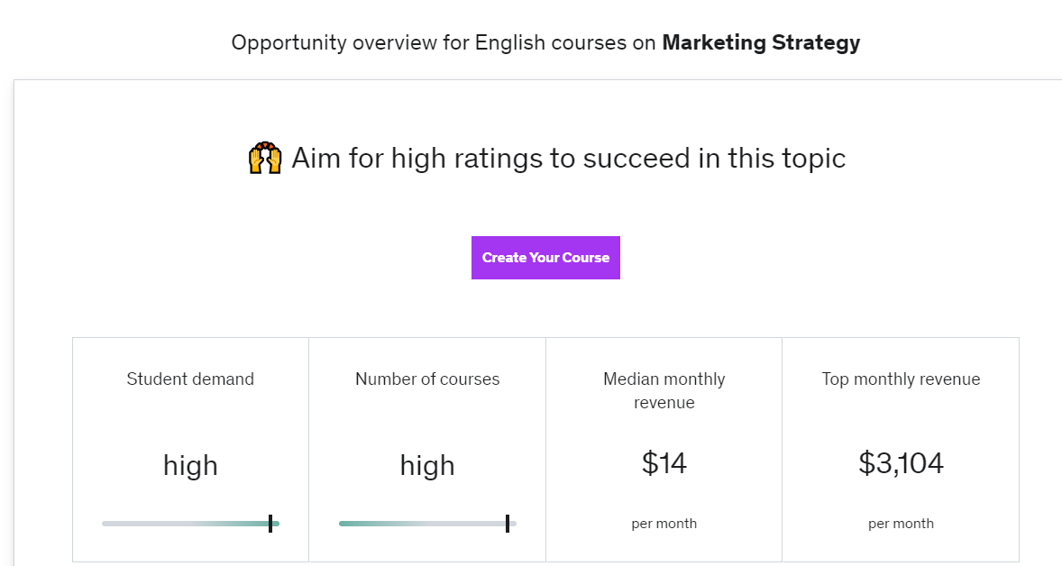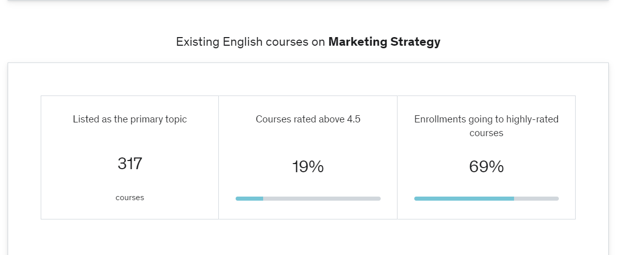 If you search on Udemy, you'll see that there are 317 courses under "Marketing Strategy" and the enrollment rate is 69%.