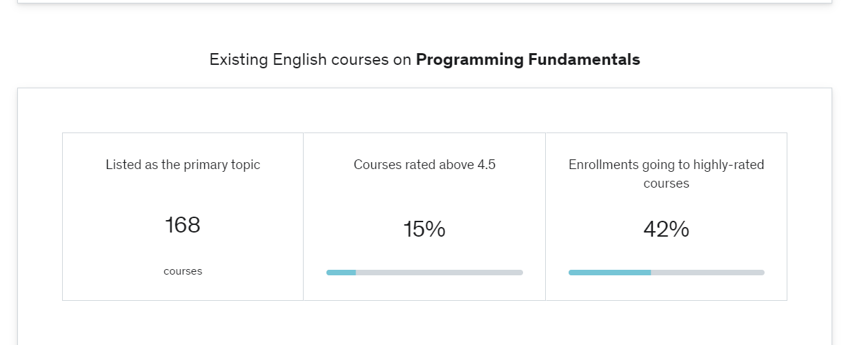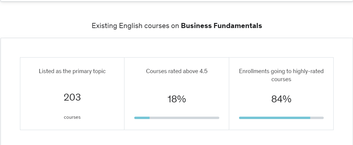 You'll also notice that only 18% of courses have 4.5 and above ratings. The student demand is super high.