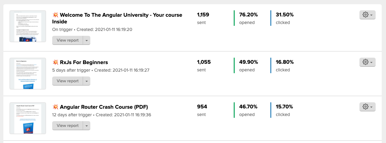 This doesn't have to be like that, and as an example here are the statistics for the first 3 emails of my latest email sequence: