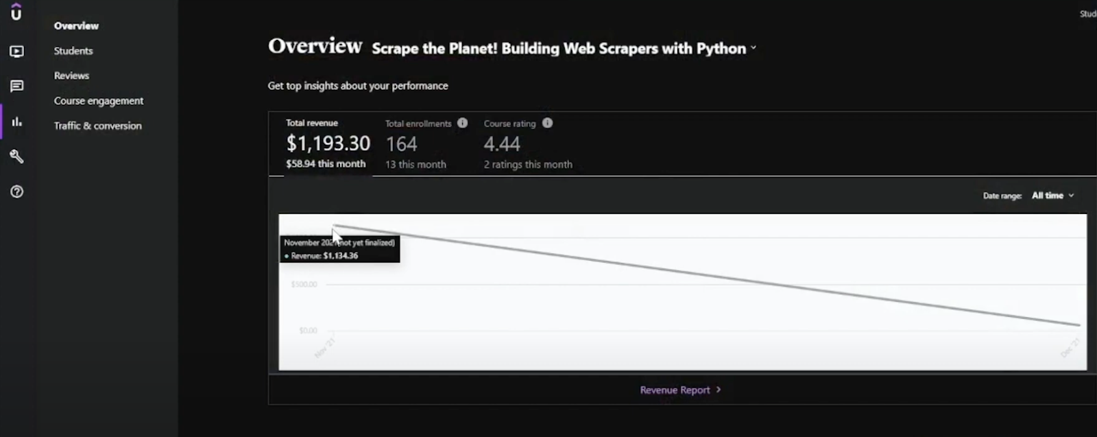 Besides presenting the Udemy instructor revenue of some well-known instructors, we are also going to show you some internal Udemy tools that will help you have a better idea of what revenue you can expect for your course category.