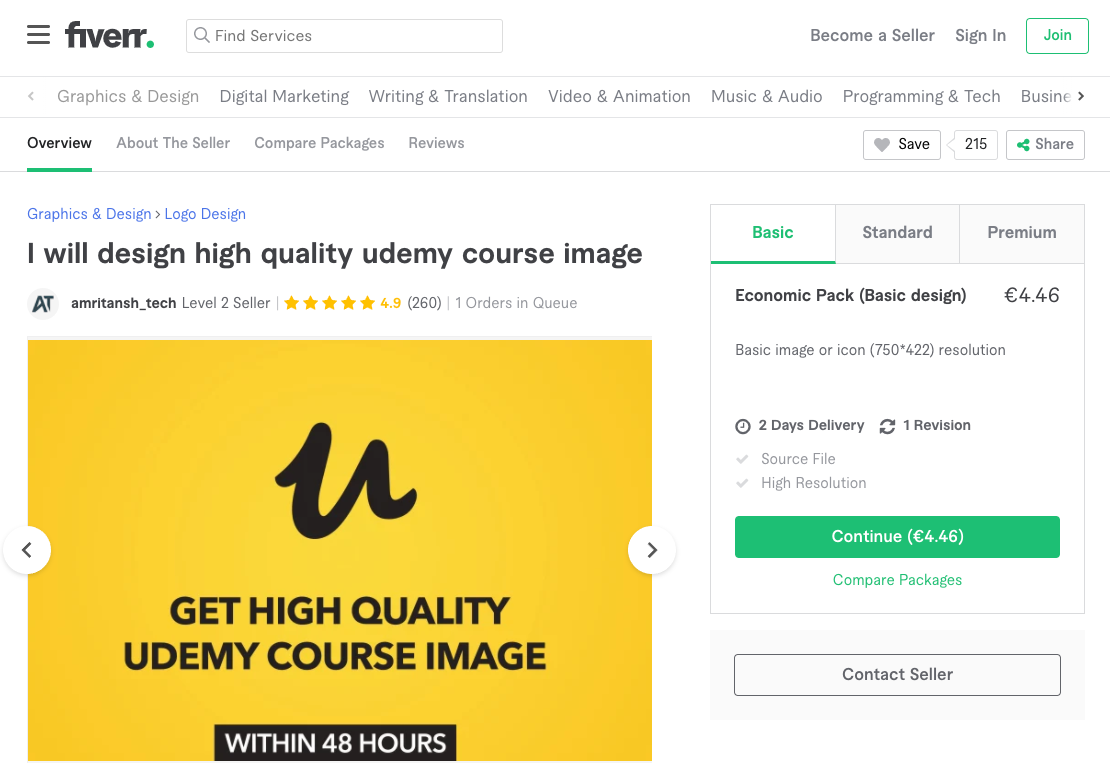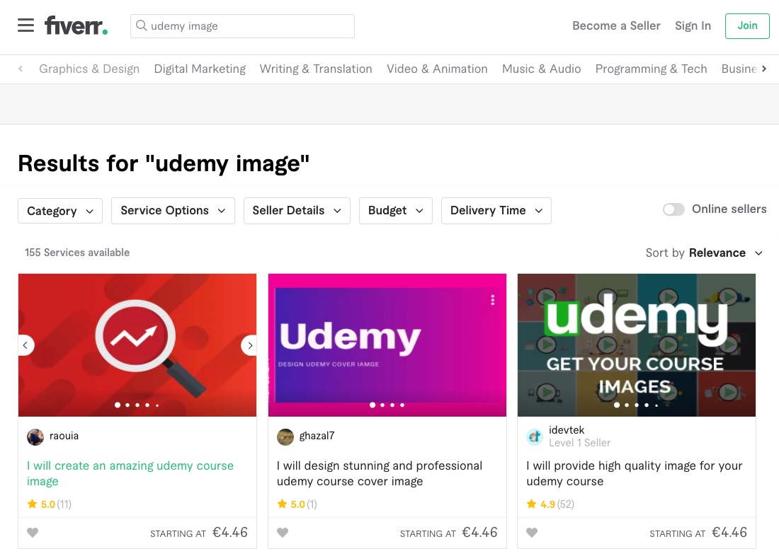 A good image costs only about $10 to $20 to create (with the source file included) on the Fiverr platform for example, where you can find great designers that already have experience creating thumbnails for online courses, so it's really a no-brainer.