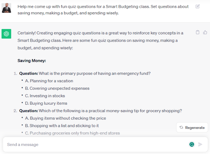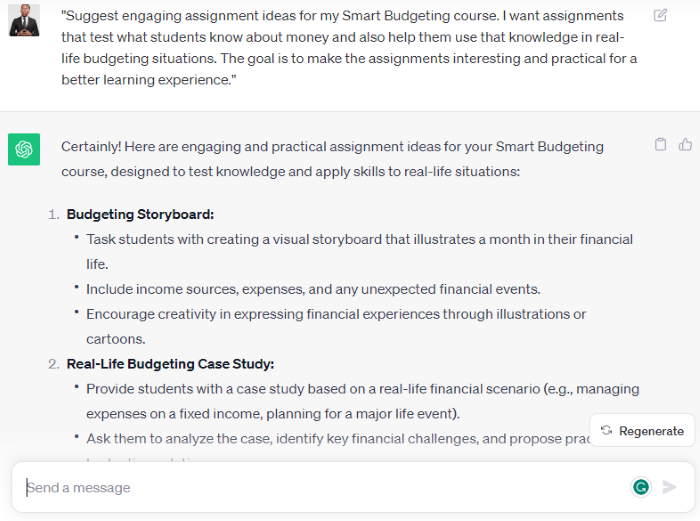 For example, if your module is about "Smart Budgeting," you can ask ChatGPT this: