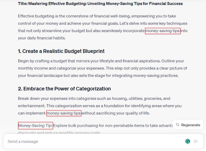 "Help me write about effective budgeting techniques, including the keyword 'money-saving tips.'"