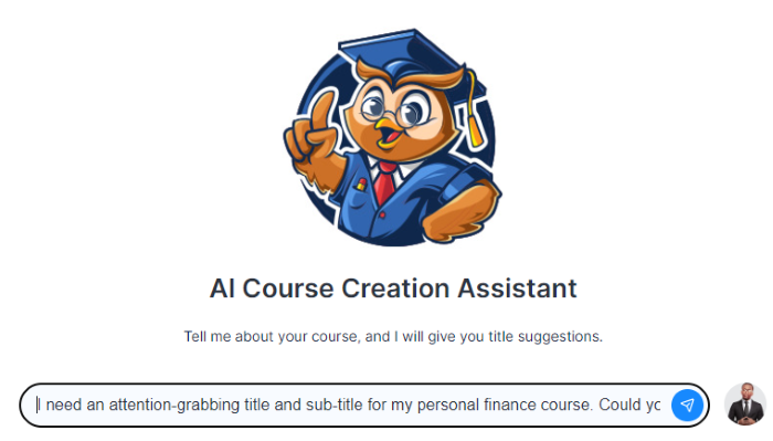 This includes but is not limited to: title suggestions, course content ideas, generate video scripts and lesson outlines, and much more.