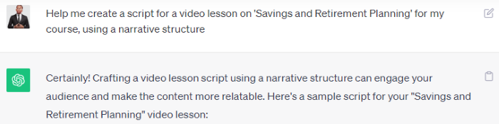 Next, ask ChatGPT to draft scripts for your video or audio lessons.