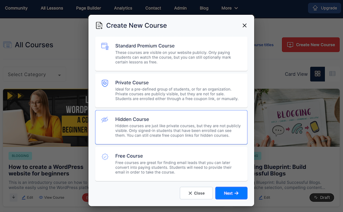 Need to keep things exclusive? Private or hidden courses are your best bet.