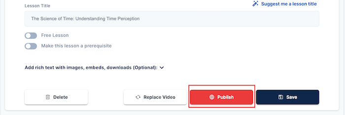 You can also make the lesson free or a prerequisite. Scroll down and click "Publish." to make it live.