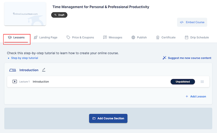 Learn how to create an online course effortlessly with the intuitive OnlineCourseHost.com course builder. This guide covers everything from different types of courses and different lesson types: video, audio, rich text, quizzes, assignments, digital downloads, and more.