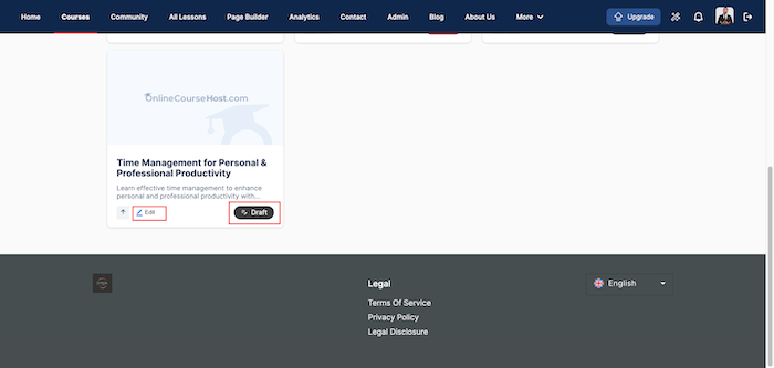 You'll notice your course is in draft mode. Click on "Edit" to start creating content for your course.