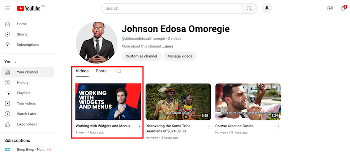 - Select the Video: Visit your channel, find the video you want to embed and click on it.