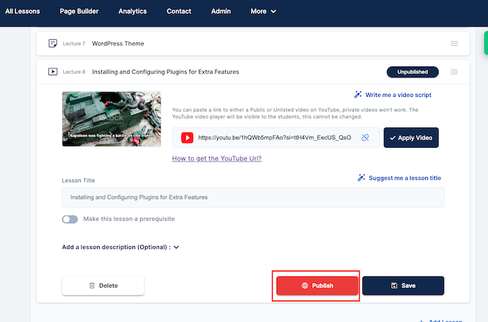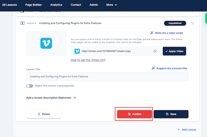 - Publish the video lesson.