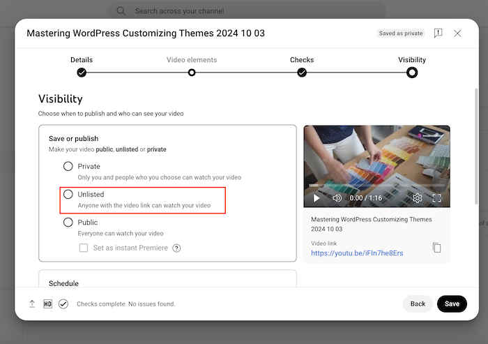 - Ensure the video is set as unlisted before you copy its URL.