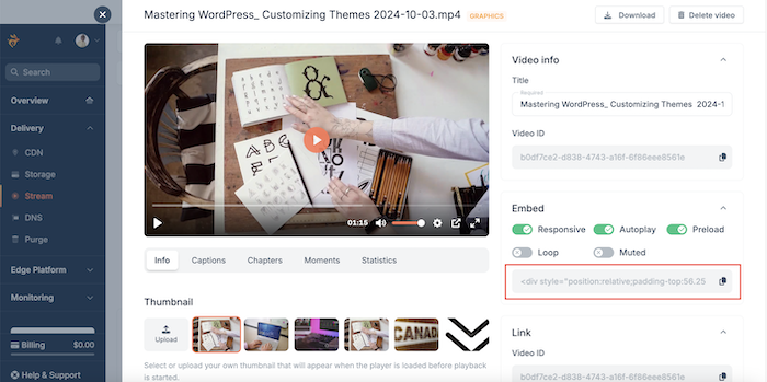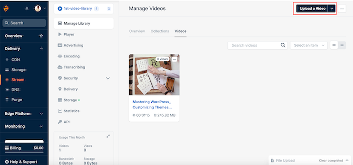 - Upload Your Videos: Log in to your BunnyCDN account and upload the videos you want to host. Click on the video.