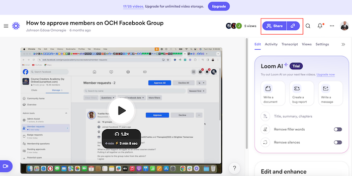 - Go to Your Dashboard: After logging in, navigate to your Loom library, where all your videos are listed.