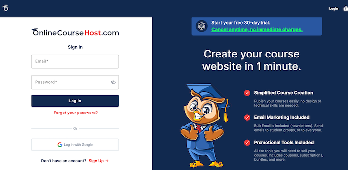 - Start by logging into your OnlineCourseHost.com account.