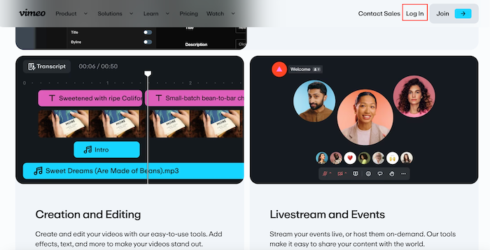 - Log in to Vimeo: Head to Vimeo and log into your account.