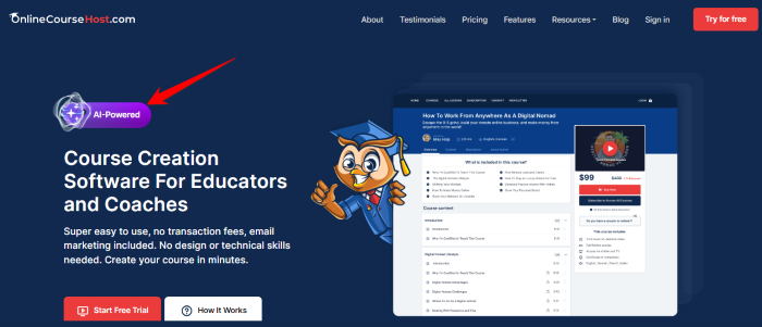 Allow me to introduce OnlineCourseHost.com, an online course hosting platform enhanced with AI technology and email marketing capabilities. Building your website has never been more straightforward with this platform!