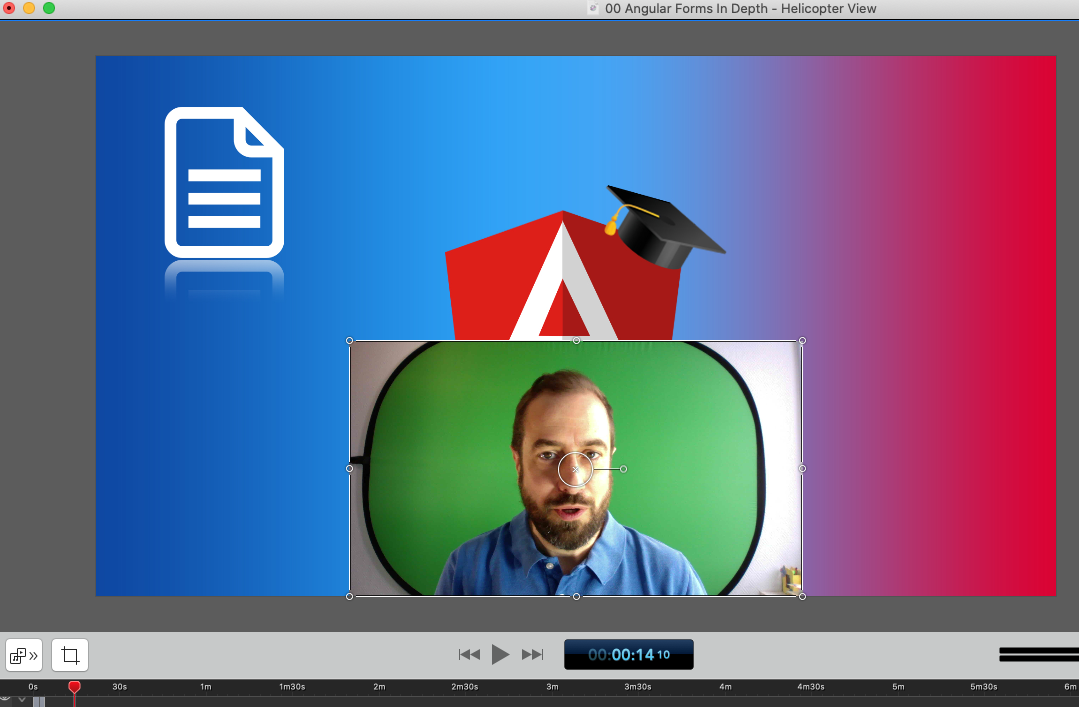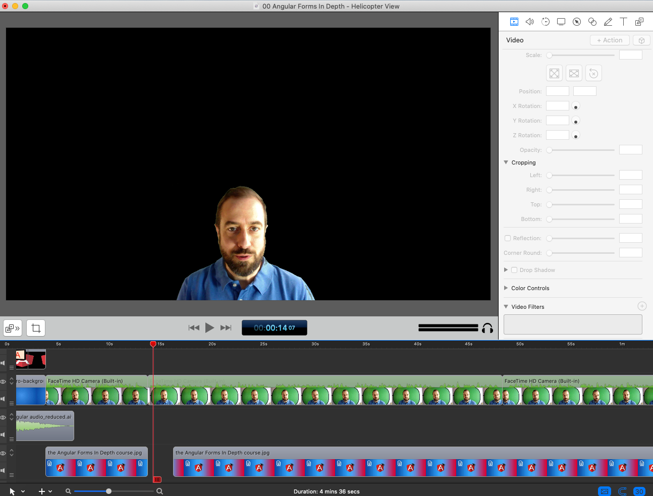 As you can see, without the background, all the space around me is transparent, and we only see the default black background of the Screenflow editor.