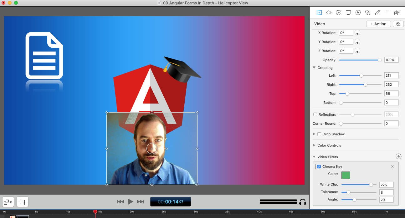 As you can see, it’s extremely easy to do a professional-looking green screen recording, and project yourself into your courses, to better highlight a point when there is not much going on in the recording.