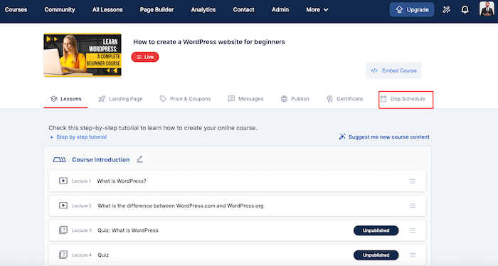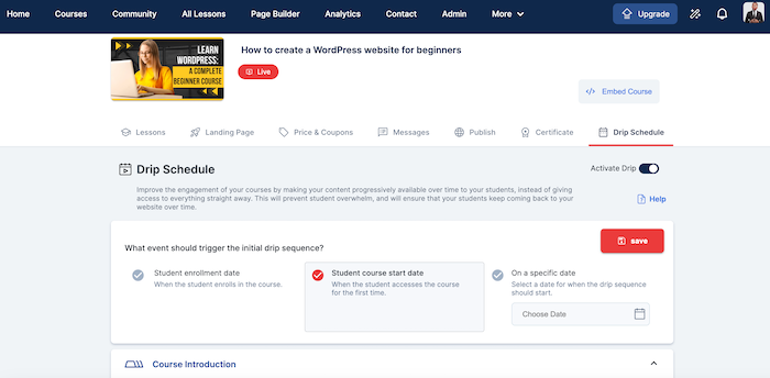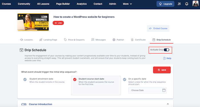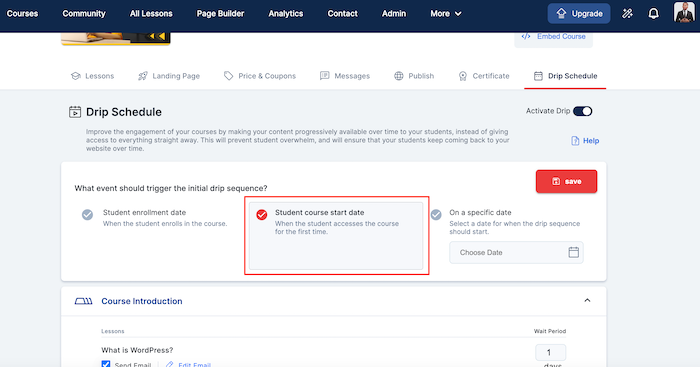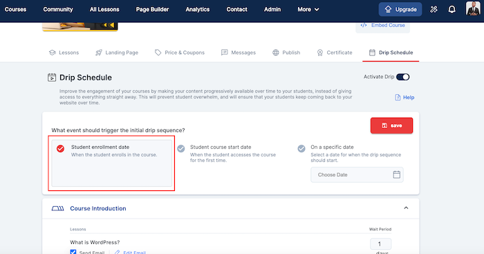 The key is to create a schedule that works best for your content and your students. Let's look at two main ways to customize your drip schedule.