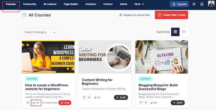 - Log into your account and go to your course. Click on "Edit" below the course you want to apply the drip schedule.