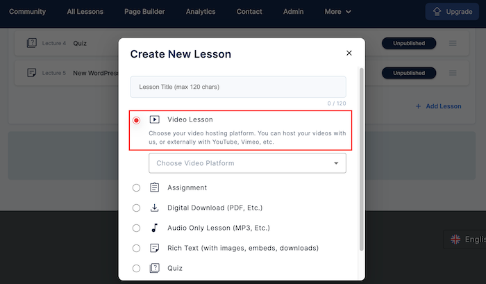 To learn how to create video lectures, quizzes, downloadable resources, and assignments read our guide on "How to Create an Online Course (with an Intuitive Course Builder)".