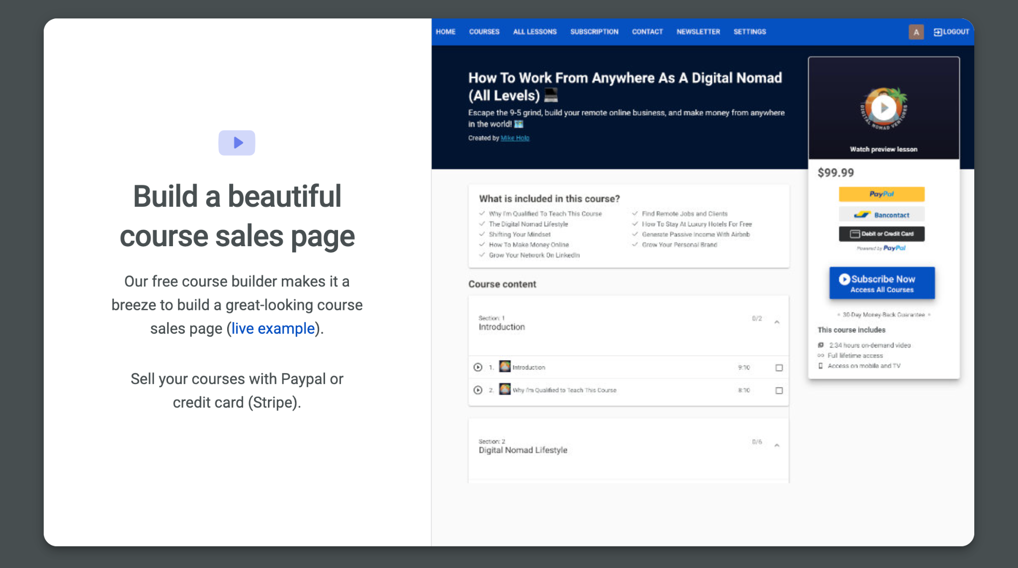You’ll get access to all the features that you need to build a gorgeous online course website and a great-looking course sales page: