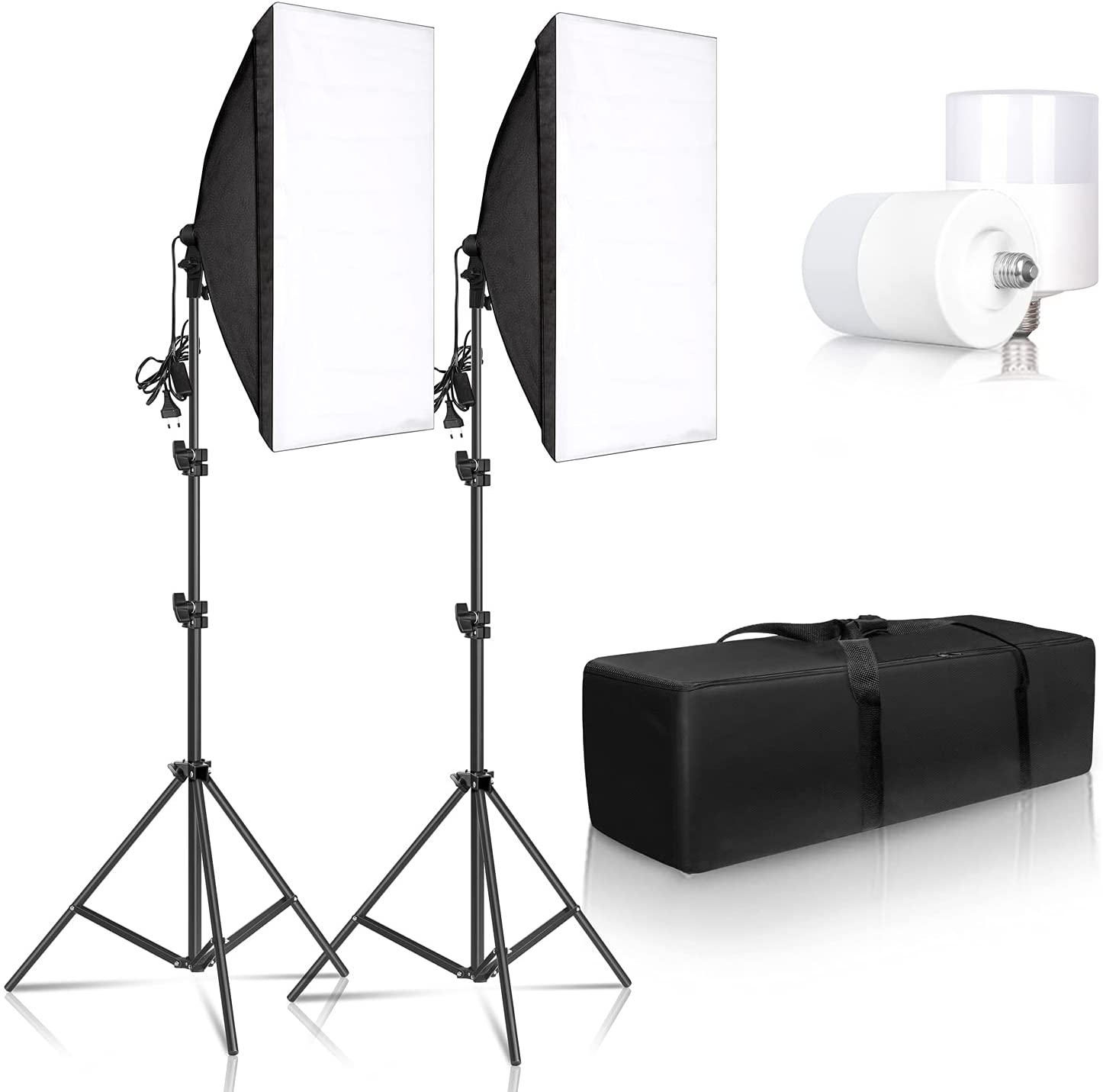 Where possible, I always recommend people utilize natural light and record in a well-lit room. Yet this isn’t always possible, so it’s worth investing in some solid lighting like this Softbox Studio…