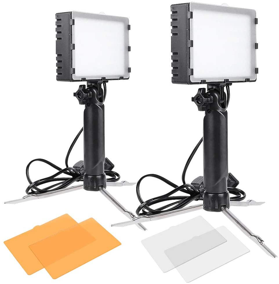 Having a few softbox lights helps you remove any unnecessary shadows and fill your background, whereas the desktop lamps ensure you’re personally well lit (or whatever your main subject is).