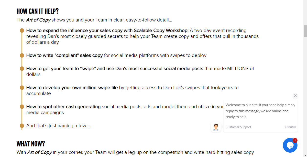 Finally, the live chat feature and live sales notification on this page are excellent tools for creating a sense of urgency and inducing the audience to act.