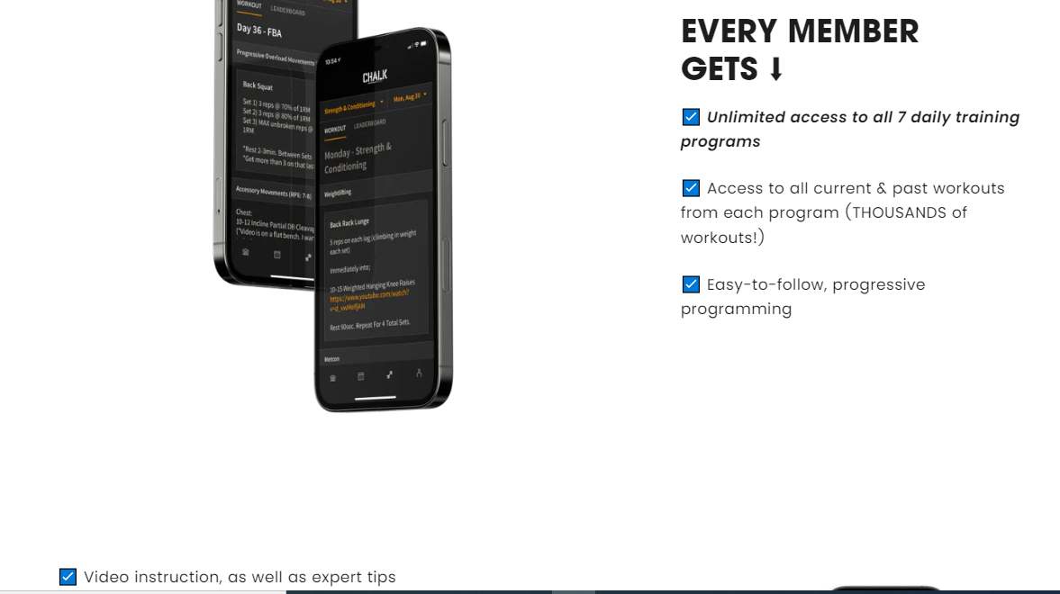 Chalk Performance Training, owned by CrossFit athlete Ryan Fischer, is a world-leading online training app that offers a variety of programming such as weightlifting, personal training, cardio-intensive workouts, and so on.