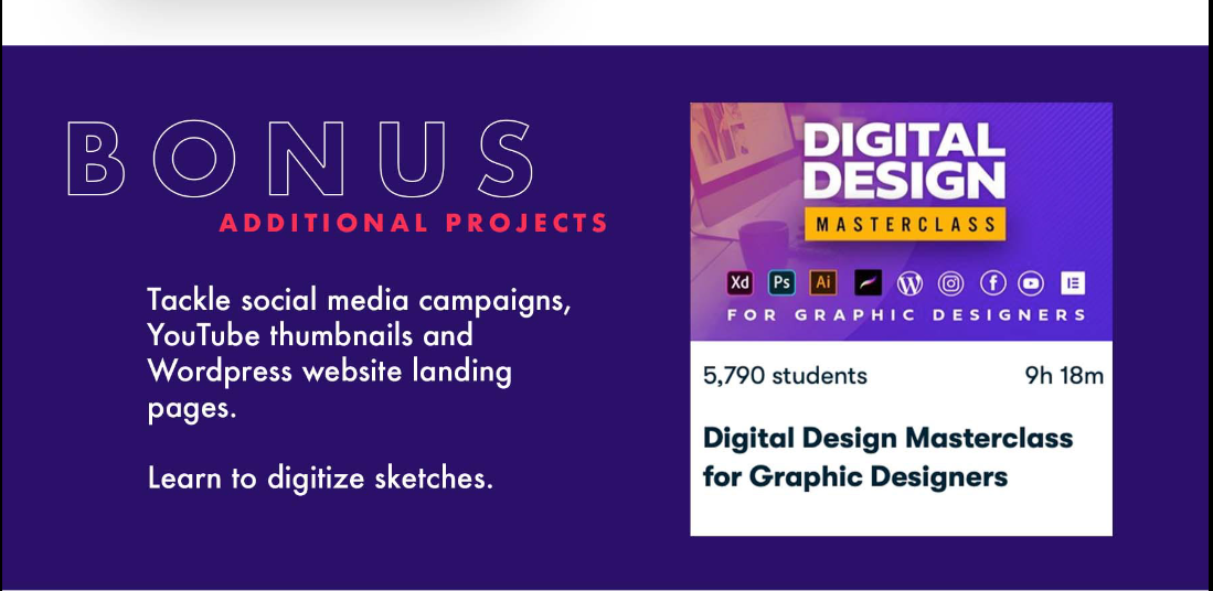 In most cases, this approach may not exactly follow the rule of thumb for creating a high-converting sales page, as it tends to divert the audience's attention away from the offer, which is the most important element. But, when you consider that the page itself is for a graphic design course, then it's easy to see why that is not a problem.