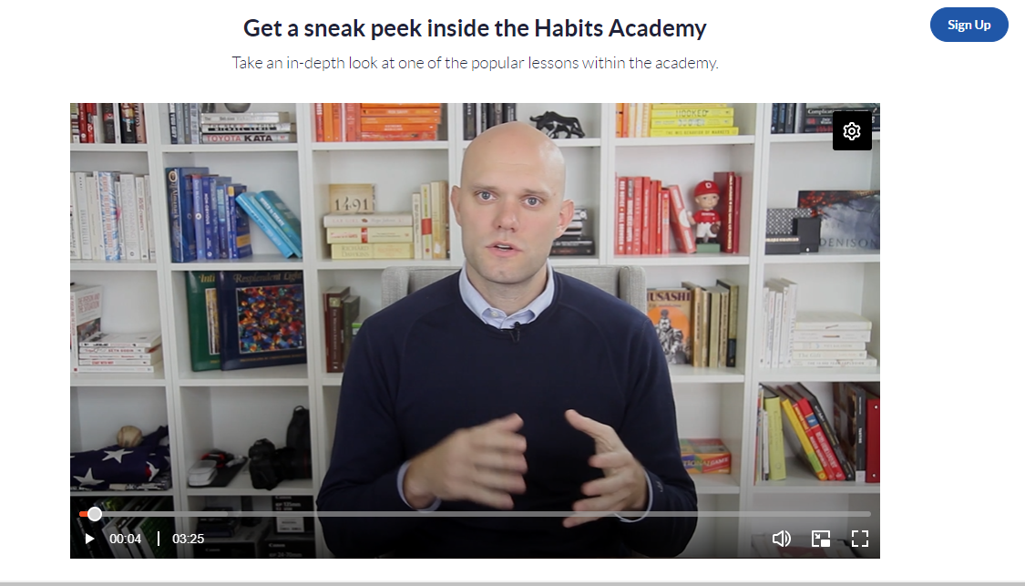One interesting feature of this page is that it gives the audience a sneak peek into the Academy by displaying one of the Academy's popular lessons. This, I believe, will arouse their interest. Moreover, by stating in clear terms the life-changing benefits they would receive by enrolling in the Academy, coupled with lots of powerful testimonials, I can imagine at this point, the audience is left with no other choice but to hit the sign-up button.