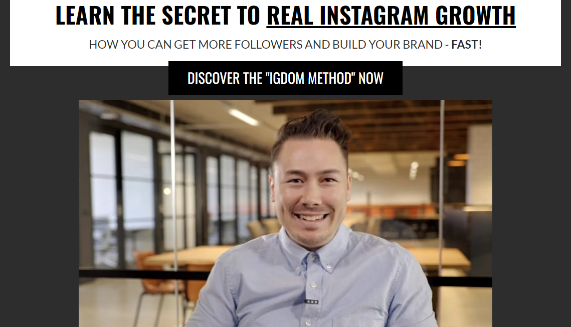 At the top of this sales page is the hero section, a 2-minute introductory video in which Nathan shares a brief description of the company's journey and how Instagram has been a major tool for their success.