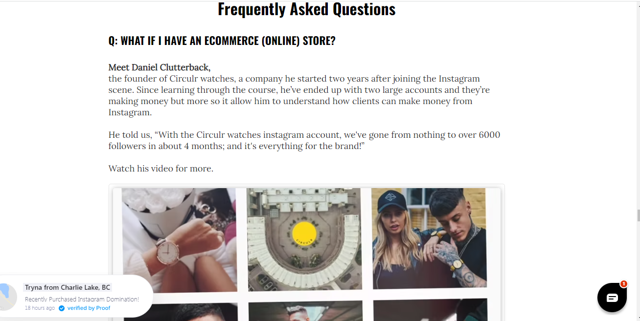 Furthermore, while many course creators use a similar approach for their FAQs section, Nathan takes a different approach. In an unusual twist, he responds to some of the questions with real-life examples and video testimonials that provide all of the evidence or proof the audience needs.
