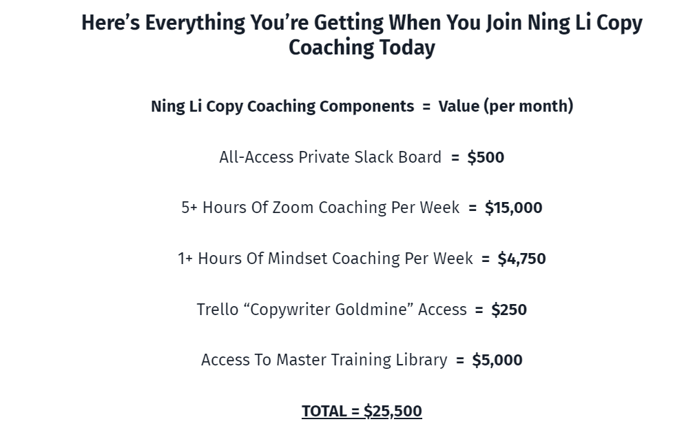 It is packed with various testimonials and proofs from Ning's students and other A-list copywriters, lending credence to his authority in the copywriting space.