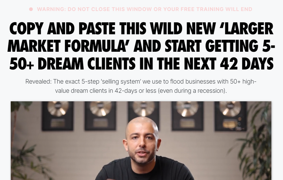 Finally, the video ends with an effective call to action in which he calls out to a clearly defined audience to sign up for an irresistible offer. The rest of this page is filled with numerous social proof and all sorts of testimonials.