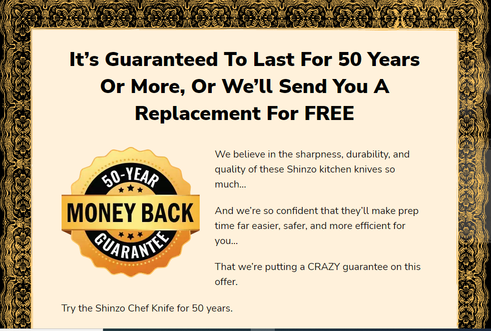 What's further outstanding about this page is the risk reversal section. Usually, Most Products will offer between a 30-90 day money back guarantee, but with a 50-year guarantee on this, that's unprecedented! You can't possibly compete with that level of assurance.