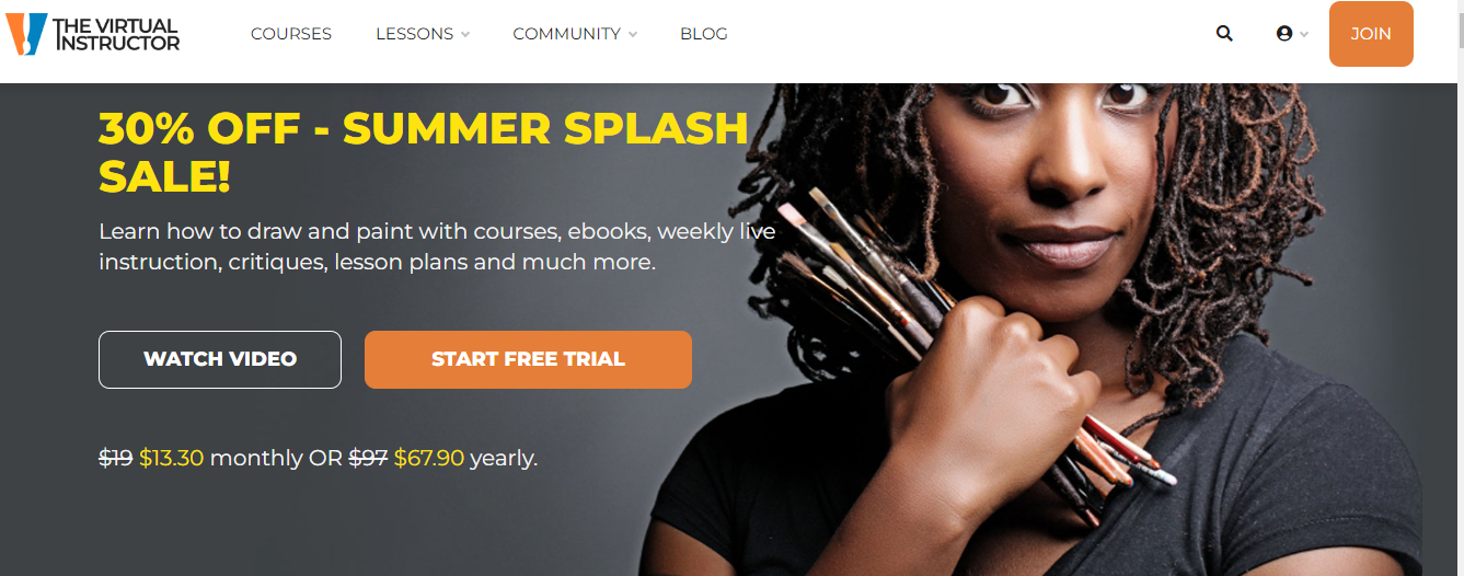 The Virtual Instructor is designed to teach you how to draw and paint by using different resources for every learning style. These resources include videos, e-books, live lessons, lesson plans, and more.