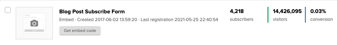 As you can see, from 1000 page views, I only get 3 emails but this might be because this form is at the end of each blog post, and a lot of readers don't get to the bottom of the page.