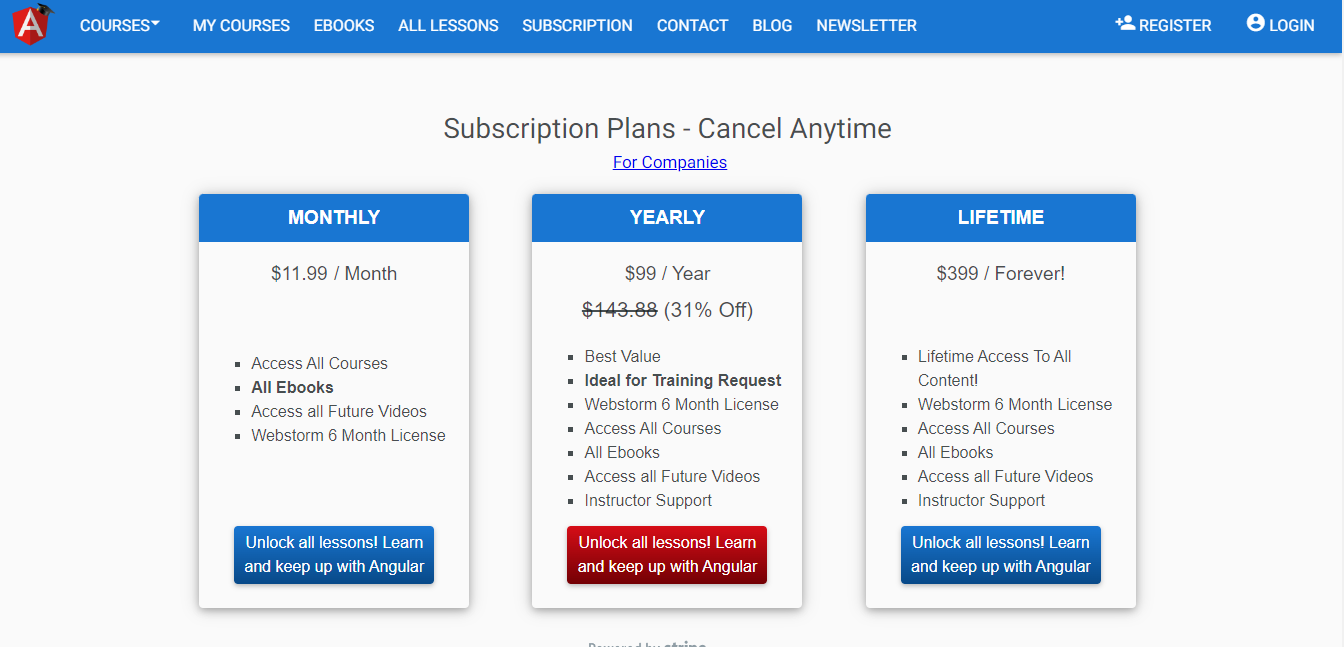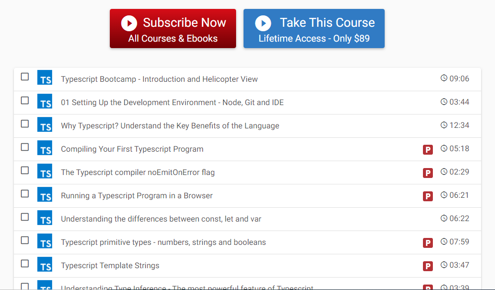 You can choose to buy just one course for $89 as a one-time payment. But if instead, you want to gain access to all the courses on the website, then you can subscribe using the red button.