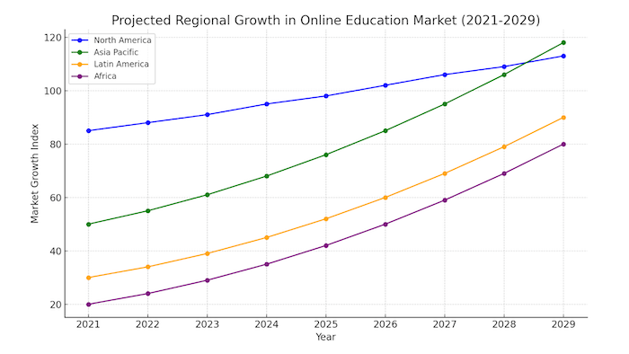 The Middle East and Africa are relatively new to the online education market, but they are experiencing rapid growth. Countries like the UAE and South Africa are investing heavily in education technology, and online learning is becoming increasingly popular.