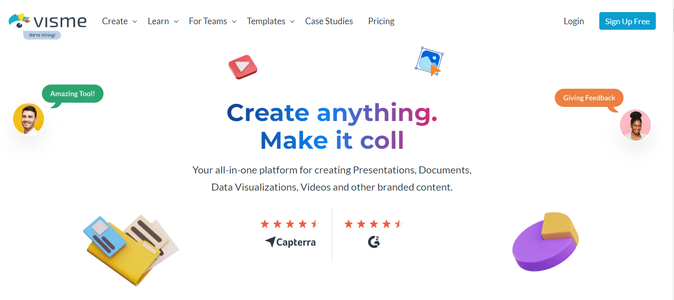 Visme is an all-in-one visual content platform that allows everyone, including non-designers, to create professional presentations, interactive infographics, beautiful design, and engaging videos all in one place.